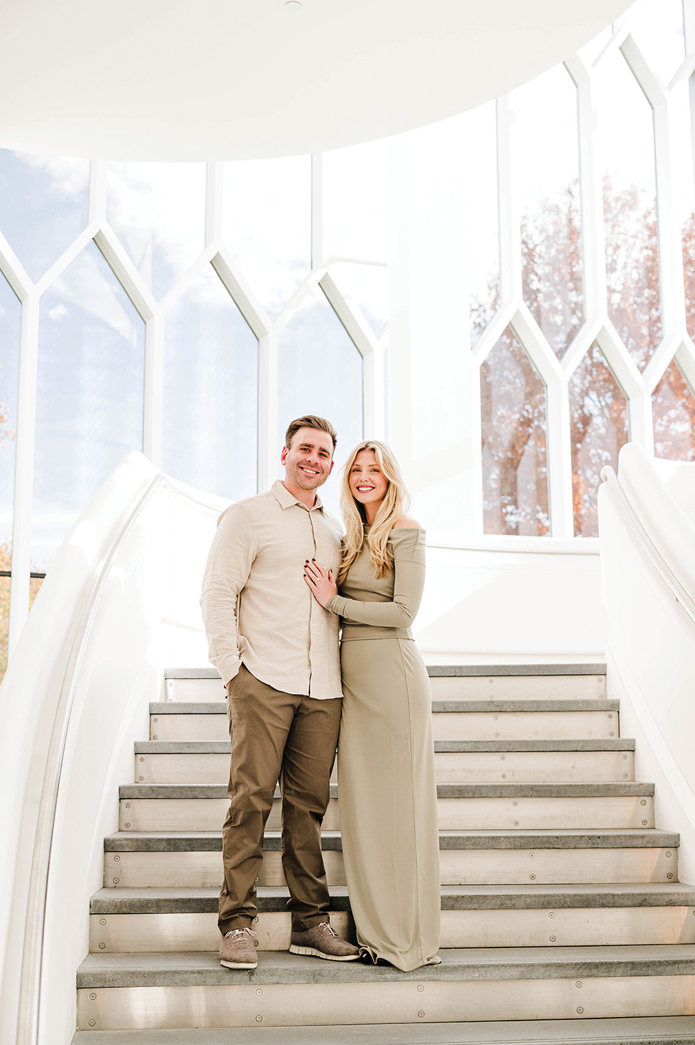 “We wanted our engagement photos to feel unique and be different from the pictures we already have together. We chose the Center for the Arts because it offers such a variety of beautiful backdrops, from its stunning architecture to the outdoor gardens. We felt we could capture many diverse shots in one location and that the photos would feel timeless, not just tied to the wedding.”