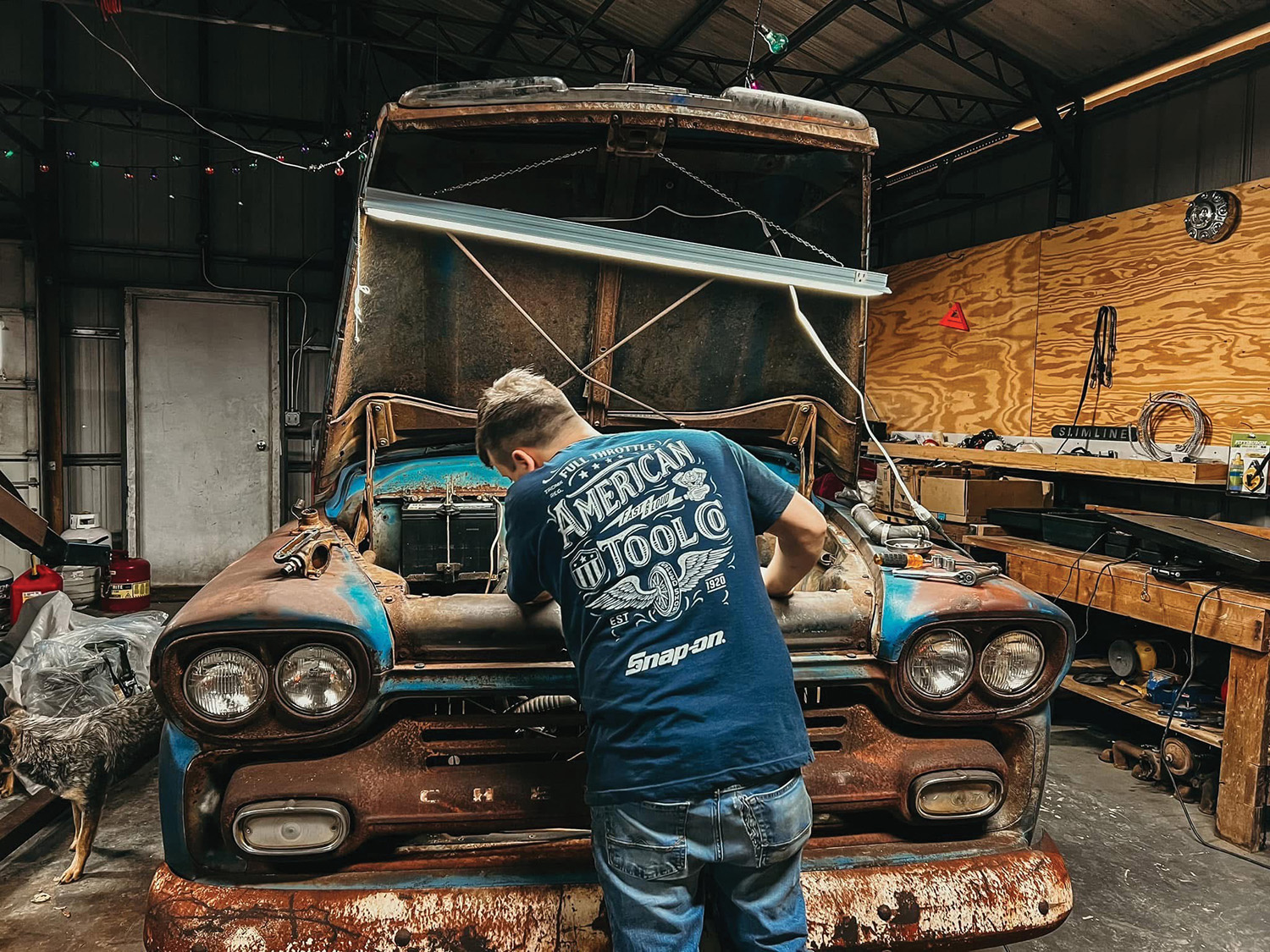 Once home, the restoration work began. “When we took out the stump, the tailgate fell off, and we discovered the stump was the only thing holding the bed together,” states Madison. “The bed was rusted out, and the wood was rotten, so Luke rebuilt and rewelded it and replaced the wood portion with diamond plate steel.”